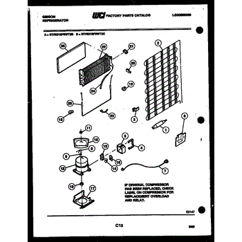 This is a compressor used in several types of home appliances. The compressor is designed to take cold gas in the appliance and place it under pressure so the gas raises in temperature. It is then moved through the refrigerator system to ensure the unit stays cold throughout the appliance. This part can become damaged or malfunction, which may cause the motor to stop running, make the motor noisier, or cause the motor to never stop running.If this happens, the compressor will need to be replaced. A basic set of tools will be needed. A pair of work gloves can also be useful. First, locate the compressor as it may be in various locations depending on the appliance model. Unplug the appliance before removing the compressor. Install the new compressor using the original bolts and nuts before turning the power back on and resuming normal use.This part is sold on an individual basis. The compressor is made to be used with refrigerators, ranges, stoves, ovens, air conditioners, and freezers created by Gibson, Frigidaire, Kelvinator, Montgomery Wards, Westinghouse, Tappan, JCPenney, Universal, and Kenmore. It is an authentic OEM replacement part directly sourced from the manufacturer.