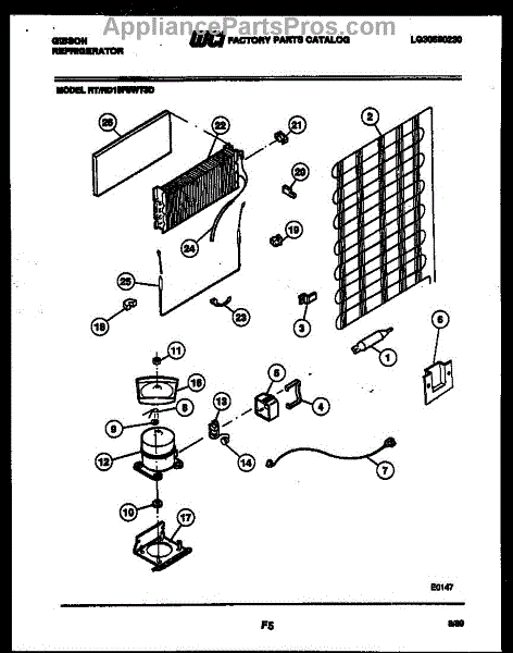 This is a compressor used in several types of home appliances. The compressor is designed to take cold gas in the appliance and place it under pressure so the gas raises in temperature. It is then moved through the refrigerator system to ensure the unit stays cold throughout the appliance. This part can become damaged or malfunction, which may cause the motor to stop running, make the motor noisier, or cause the motor to never stop running.If this happens, the compressor will need to be replaced. A basic set of tools will be needed. A pair of work gloves can also be useful. First, locate the compressor as it may be in various locations depending on the appliance model. Unplug the appliance before removing the compressor. Install the new compressor using the original bolts and nuts before turning the power back on and resuming normal use.This part is sold on an individual basis. The compressor is made to be used with refrigerators, ranges, stoves, ovens, air conditioners, and freezers created by Gibson, Frigidaire, Kelvinator, Montgomery Wards, Westinghouse, Tappan, JCPenney, Universal, and Kenmore. It is an authentic OEM replacement part directly sourced from the manufacturer.