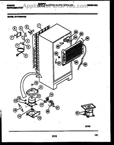 This is a compressor used in several types of home appliances. The compressor is designed to take cold gas in the appliance and place it under pressure so the gas raises in temperature. It is then moved through the refrigerator system to ensure the unit stays cold throughout the appliance. This part can become damaged or malfunction, which may cause the motor to stop running, make the motor noisier, or cause the motor to never stop running.If this happens, the compressor will need to be replaced. A basic set of tools will be needed. A pair of work gloves can also be useful. First, locate the compressor as it may be in various locations depending on the appliance model. Unplug the appliance before removing the compressor. Install the new compressor using the original bolts and nuts before turning the power back on and resuming normal use.This part is sold on an individual basis. The compressor is made to be used with refrigerators, ranges, stoves, ovens, air conditioners, and freezers created by Gibson, Frigidaire, Kelvinator, Montgomery Wards, Westinghouse, Tappan, JCPenney, Universal, and Kenmore. It is an authentic OEM replacement part directly sourced from the manufacturer.