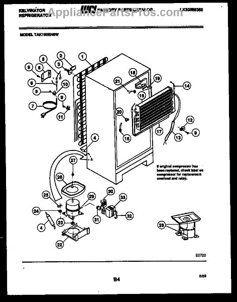 This is a compressor used in several types of home appliances. The compressor is designed to take cold gas in the appliance and place it under pressure so the gas raises in temperature. It is then moved through the refrigerator system to ensure the unit stays cold throughout the appliance. This part can become damaged or malfunction, which may cause the motor to stop running, make the motor noisier, or cause the motor to never stop running.If this happens, the compressor will need to be replaced. A basic set of tools will be needed. A pair of work gloves can also be useful. First, locate the compressor as it may be in various locations depending on the appliance model. Unplug the appliance before removing the compressor. Install the new compressor using the original bolts and nuts before turning the power back on and resuming normal use.This part is sold on an individual basis. The compressor is made to be used with refrigerators, ranges, stoves, ovens, air conditioners, and freezers created by Gibson, Frigidaire, Kelvinator, Montgomery Wards, Westinghouse, Tappan, JCPenney, Universal, and Kenmore. It is an authentic OEM replacement part directly sourced from the manufacturer.