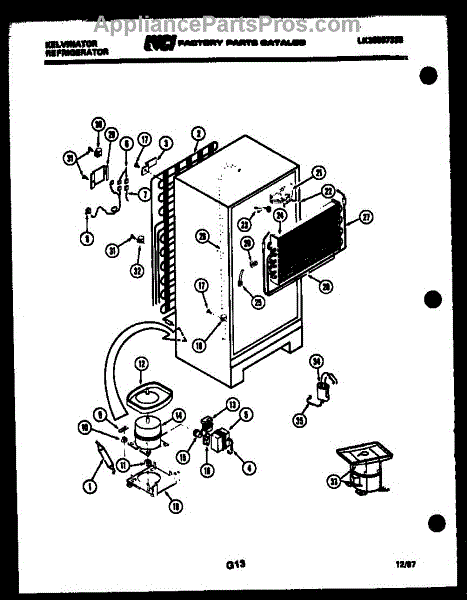 This is a compressor used in several types of home appliances. The compressor is designed to take cold gas in the appliance and place it under pressure so the gas raises in temperature. It is then moved through the refrigerator system to ensure the unit stays cold throughout the appliance. This part can become damaged or malfunction, which may cause the motor to stop running, make the motor noisier, or cause the motor to never stop running.If this happens, the compressor will need to be replaced. A basic set of tools will be needed. A pair of work gloves can also be useful. First, locate the compressor as it may be in various locations depending on the appliance model. Unplug the appliance before removing the compressor. Install the new compressor using the original bolts and nuts before turning the power back on and resuming normal use.This part is sold on an individual basis. The compressor is made to be used with refrigerators, ranges, stoves, ovens, air conditioners, and freezers created by Gibson, Frigidaire, Kelvinator, Montgomery Wards, Westinghouse, Tappan, JCPenney, Universal, and Kenmore. It is an authentic OEM replacement part directly sourced from the manufacturer.