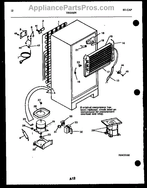 This is a compressor used in several types of home appliances. The compressor is designed to take cold gas in the appliance and place it under pressure so the gas raises in temperature. It is then moved through the refrigerator system to ensure the unit stays cold throughout the appliance. This part can become damaged or malfunction, which may cause the motor to stop running, make the motor noisier, or cause the motor to never stop running.If this happens, the compressor will need to be replaced. A basic set of tools will be needed. A pair of work gloves can also be useful. First, locate the compressor as it may be in various locations depending on the appliance model. Unplug the appliance before removing the compressor. Install the new compressor using the original bolts and nuts before turning the power back on and resuming normal use.This part is sold on an individual basis. The compressor is made to be used with refrigerators, ranges, stoves, ovens, air conditioners, and freezers created by Gibson, Frigidaire, Kelvinator, Montgomery Wards, Westinghouse, Tappan, JCPenney, Universal, and Kenmore. It is an authentic OEM replacement part directly sourced from the manufacturer.