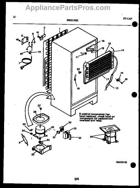 This is a compressor used in several types of home appliances. The compressor is designed to take cold gas in the appliance and place it under pressure so the gas raises in temperature. It is then moved through the refrigerator system to ensure the unit stays cold throughout the appliance. This part can become damaged or malfunction, which may cause the motor to stop running, make the motor noisier, or cause the motor to never stop running.If this happens, the compressor will need to be replaced. A basic set of tools will be needed. A pair of work gloves can also be useful. First, locate the compressor as it may be in various locations depending on the appliance model. Unplug the appliance before removing the compressor. Install the new compressor using the original bolts and nuts before turning the power back on and resuming normal use.This part is sold on an individual basis. The compressor is made to be used with refrigerators, ranges, stoves, ovens, air conditioners, and freezers created by Gibson, Frigidaire, Kelvinator, Montgomery Wards, Westinghouse, Tappan, JCPenney, Universal, and Kenmore. It is an authentic OEM replacement part directly sourced from the manufacturer.