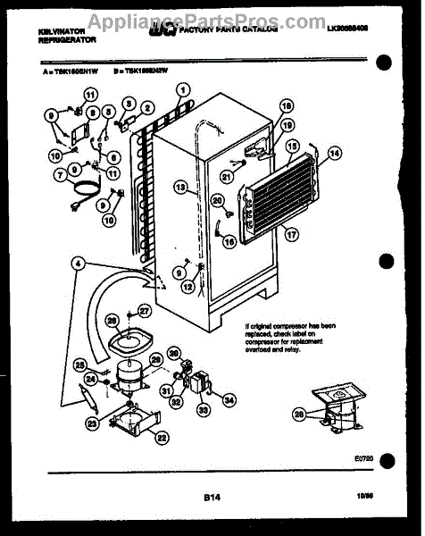 This is a compressor used in several types of home appliances. The compressor is designed to take cold gas in the appliance and place it under pressure so the gas raises in temperature. It is then moved through the refrigerator system to ensure the unit stays cold throughout the appliance. This part can become damaged or malfunction, which may cause the motor to stop running, make the motor noisier, or cause the motor to never stop running.If this happens, the compressor will need to be replaced. A basic set of tools will be needed. A pair of work gloves can also be useful. First, locate the compressor as it may be in various locations depending on the appliance model. Unplug the appliance before removing the compressor. Install the new compressor using the original bolts and nuts before turning the power back on and resuming normal use.This part is sold on an individual basis. The compressor is made to be used with refrigerators, ranges, stoves, ovens, air conditioners, and freezers created by Gibson, Frigidaire, Kelvinator, Montgomery Wards, Westinghouse, Tappan, JCPenney, Universal, and Kenmore. It is an authentic OEM replacement part directly sourced from the manufacturer.