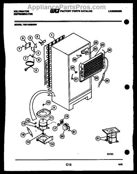 This is a compressor used in several types of home appliances. The compressor is designed to take cold gas in the appliance and place it under pressure so the gas raises in temperature. It is then moved through the refrigerator system to ensure the unit stays cold throughout the appliance. This part can become damaged or malfunction, which may cause the motor to stop running, make the motor noisier, or cause the motor to never stop running.If this happens, the compressor will need to be replaced. A basic set of tools will be needed. A pair of work gloves can also be useful. First, locate the compressor as it may be in various locations depending on the appliance model. Unplug the appliance before removing the compressor. Install the new compressor using the original bolts and nuts before turning the power back on and resuming normal use.This part is sold on an individual basis. The compressor is made to be used with refrigerators, ranges, stoves, ovens, air conditioners, and freezers created by Gibson, Frigidaire, Kelvinator, Montgomery Wards, Westinghouse, Tappan, JCPenney, Universal, and Kenmore. It is an authentic OEM replacement part directly sourced from the manufacturer.