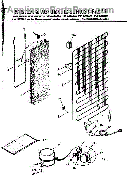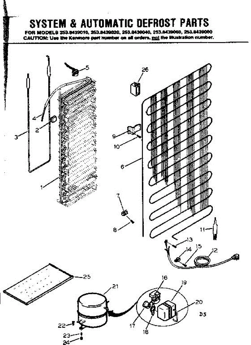 Parts for Kenmore 253.8439010 (2538439010, 253 8439010): System & Automatic Defrost Parts