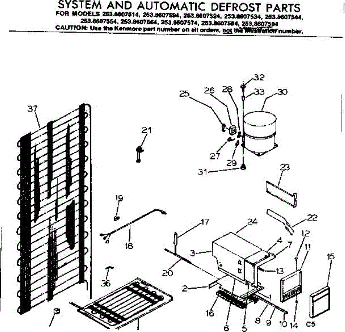 Parts for Kenmore 253.8607584 (2538607584, 253 8607584): System & Automatic Defrost Parts
