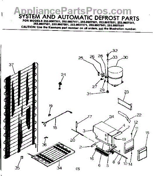 Parts for Kenmore 253.8607591 (2538607591, 253 8607591): System And Automatic Defrost Parts