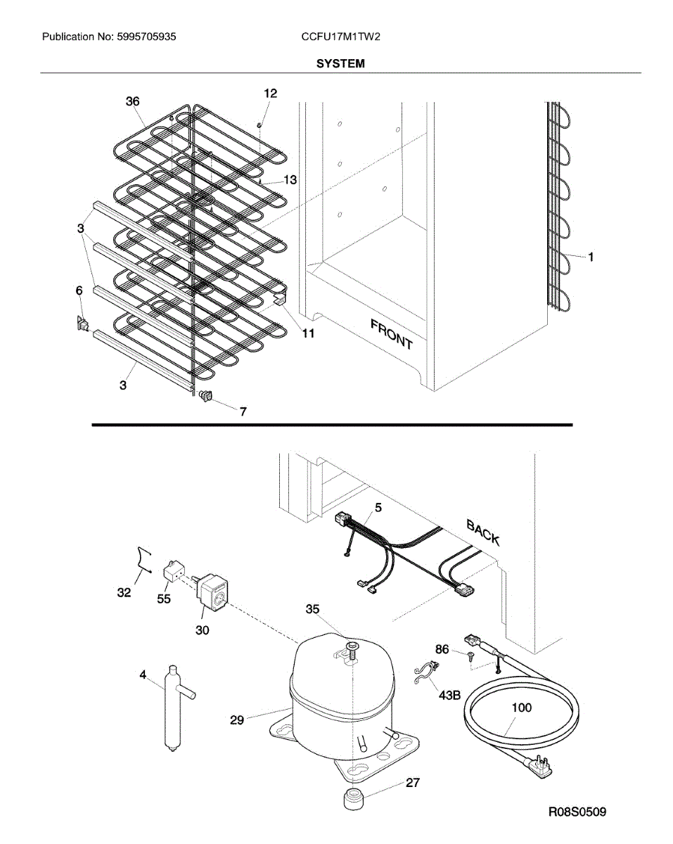 Main wiring harness that routes power between your freezer's control board and components. Replace if wires are frayed, connectors damaged, or harness worn.