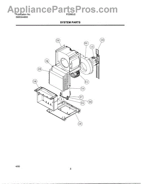 Parts for Frigidaire FDD60J2: 03 - System Parts