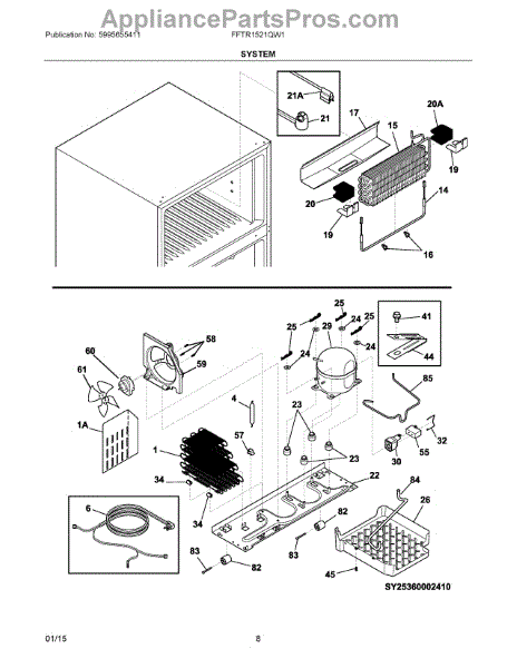 This drain tube routes defrost and condensation water from the freezer compartment to the drain pan so moisture drains away cleanly and prevents pooling. Replaces a cracked, clogged or disconnected drain line. What it does:
