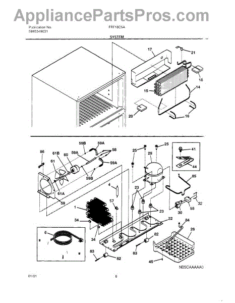 This drain trough directs defrost water from the evaporator to the refrigerator drain, helping prevent pooling, leaks and ice build-up in the fresh-food compartment. A correct trough keeps defrost water flowing and reduces odors or floor damage. What it does: