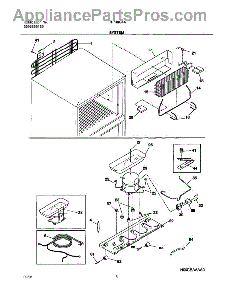 This drain trough directs defrost water from the evaporator to the refrigerator drain, helping prevent pooling, leaks and ice build-up in the fresh-food compartment. A correct trough keeps defrost water flowing and reduces odors or floor damage. What it does: