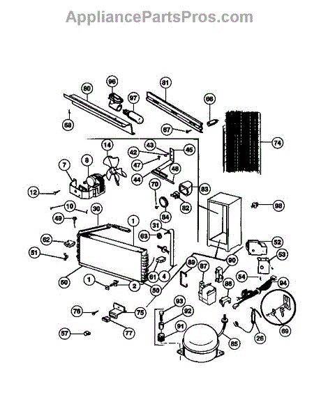 This is a compressor used in several types of home appliances. The compressor is designed to take cold gas in the appliance and place it under pressure so the gas raises in temperature. It is then moved through the refrigerator system to ensure the unit stays cold throughout the appliance. This part can become damaged or malfunction, which may cause the motor to stop running, make the motor noisier, or cause the motor to never stop running.If this happens, the compressor will need to be replaced. A basic set of tools will be needed. A pair of work gloves can also be useful. First, locate the compressor as it may be in various locations depending on the appliance model. Unplug the appliance before removing the compressor. Install the new compressor using the original bolts and nuts before turning the power back on and resuming normal use.This part is sold on an individual basis. The compressor is made to be used with refrigerators, ranges, stoves, ovens, air conditioners, and freezers created by Gibson, Frigidaire, Kelvinator, Montgomery Wards, Westinghouse, Tappan, JCPenney, Universal, and Kenmore. It is an authentic OEM replacement part directly sourced from the manufacturer.