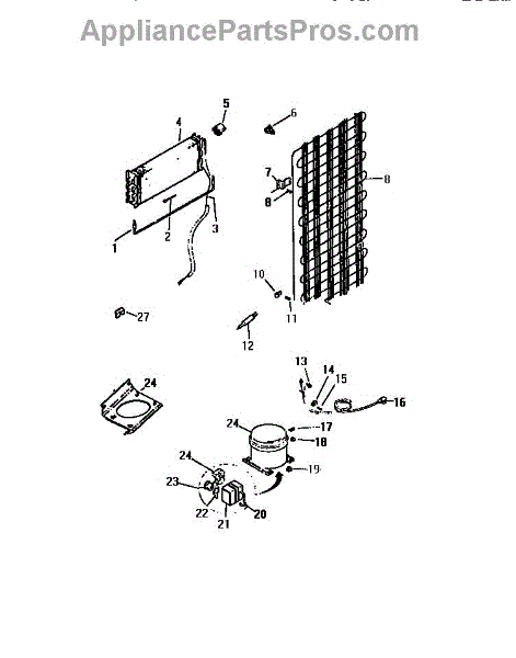 This is a compressor used in several types of home appliances. The compressor is designed to take cold gas in the appliance and place it under pressure so the gas raises in temperature. It is then moved through the refrigerator system to ensure the unit stays cold throughout the appliance. This part can become damaged or malfunction, which may cause the motor to stop running, make the motor noisier, or cause the motor to never stop running.If this happens, the compressor will need to be replaced. A basic set of tools will be needed. A pair of work gloves can also be useful. First, locate the compressor as it may be in various locations depending on the appliance model. Unplug the appliance before removing the compressor. Install the new compressor using the original bolts and nuts before turning the power back on and resuming normal use.This part is sold on an individual basis. The compressor is made to be used with refrigerators, ranges, stoves, ovens, air conditioners, and freezers created by Gibson, Frigidaire, Kelvinator, Montgomery Wards, Westinghouse, Tappan, JCPenney, Universal, and Kenmore. It is an authentic OEM replacement part directly sourced from the manufacturer.