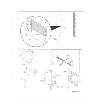 The EVAPORATOR INSULATOR is an OEM part for Frigidaire refrigerators. It is a heat-resistant insulating pad or wrap that surrounds the evaporator coils. The insulator works to retain cool air and prevent warmer air from entering the refrigerated compartment.