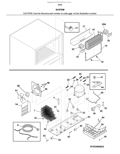 Parts for Kenmore 253.60402613 (25360402613, 253 60402613): System Parts