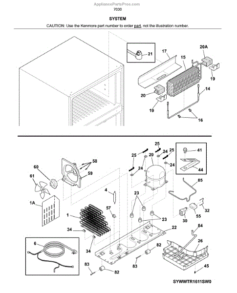 Parts for Kenmore 253.70309612 (25370309612, 253 70309612): System Parts