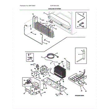 Evaporator coil assembly for bottom-mount refrigerators. Installs in the freezer compartment. Replace if damaged, leaking, or insulation is deteriorated.