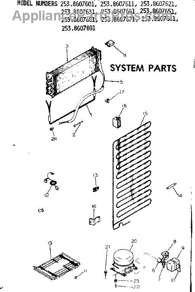 Parts for Kenmore 253.8607661 (2538607661, 253 8607661): System Parts