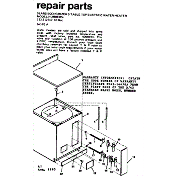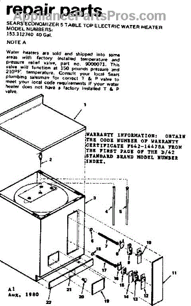 Parts for Kenmore 153.312740 (153312740, 153 312740): 5 Tabel Top Water Heater Parts