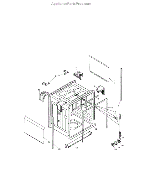 • Covers the dishwasher side opening to protect wiring and internal components from debris and moisture.