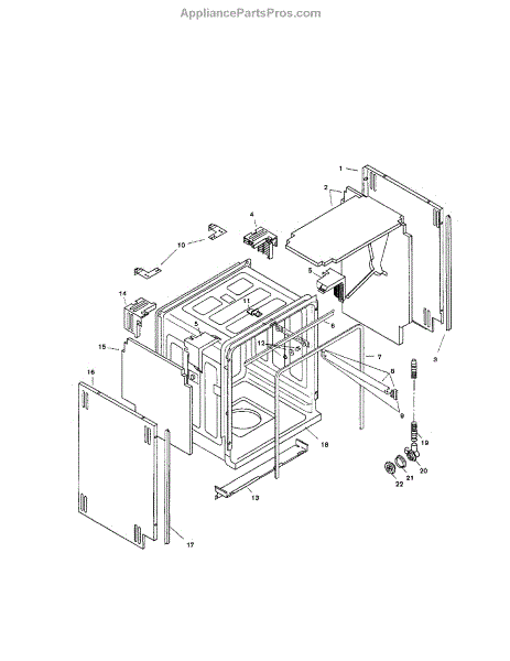 Causes of faulty dishrack stops include wear of sliding surfaces through repetitive racking and unracking over extended use. Exposure to moisture in the wash chamber environment can accelerate degradation.