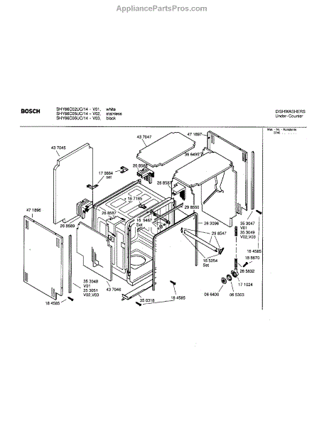 The Mounting Bracket Set is an OEM replacement part for Bosch dishwashers. Comprised of heavy-duty brackets and mounting fasteners, this set securely anchors the dishwasher to surrounding cabinetry. Causes involve normal stress and fatigue of mounting points from years of use, and cycles of expansion and contraction. Symptoms of faulty or damaged mounting brackets include: