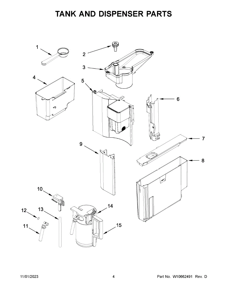 This water reservoir tank stores and channels potable water for the refrigerator dispenser and ice-making system, helping ensure consistent water flow to the dispenser and ice maker when functioning properly. What it does: