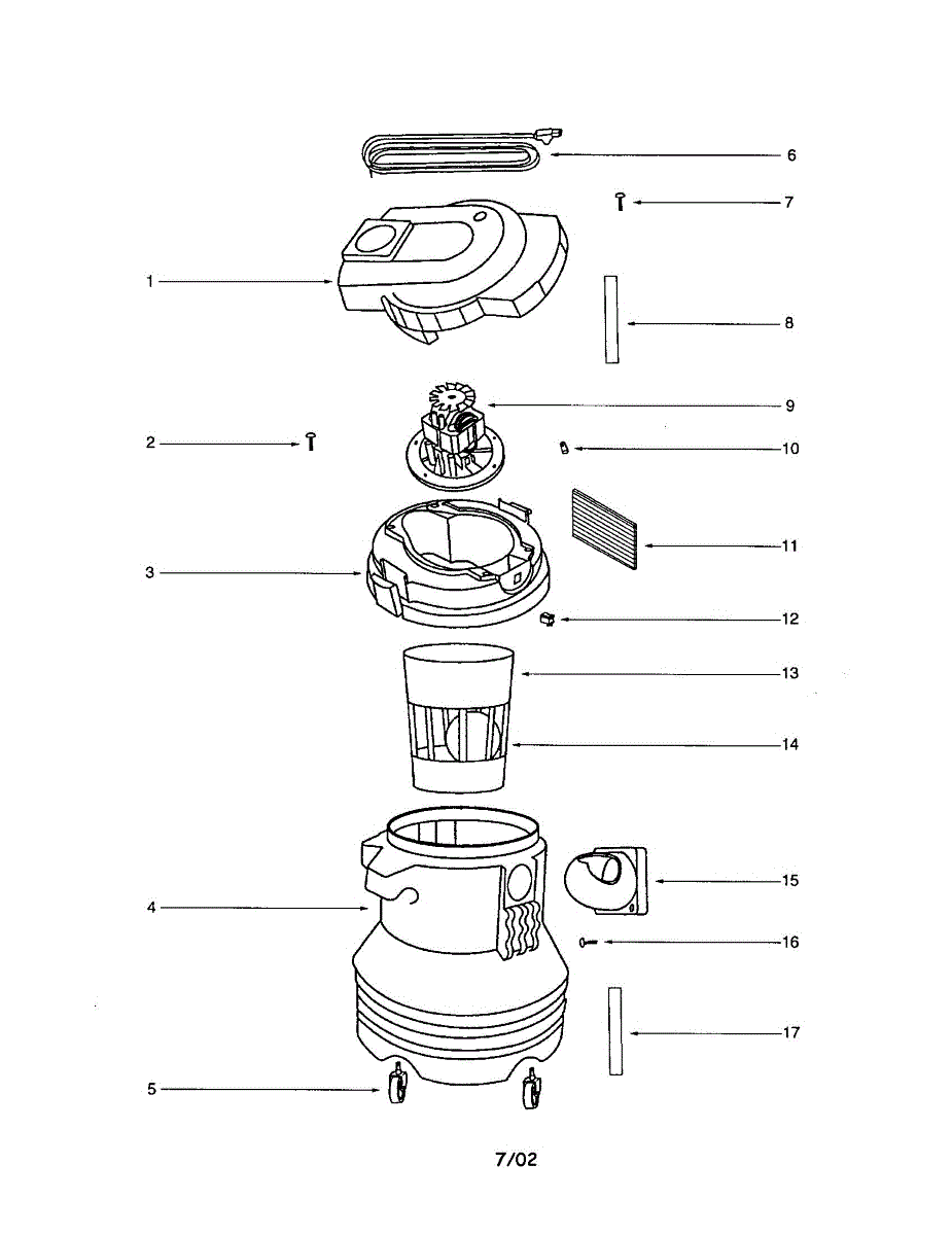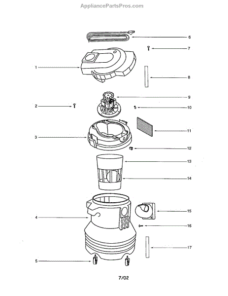 Parts for Eureka 2832B: Tank / Motor / Impeller Housing Parts