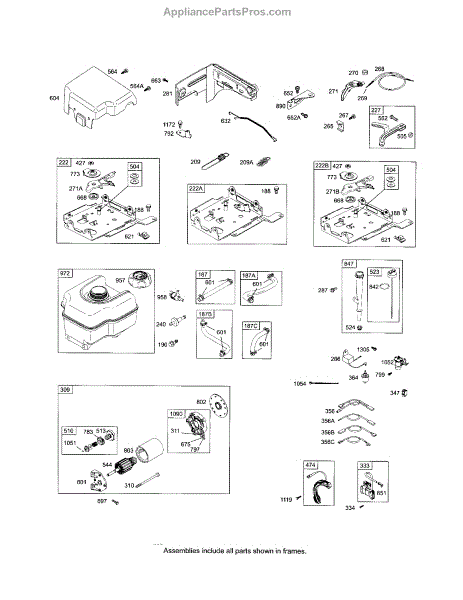 Parts for Briggs & Stratton 120312-0301-E1: Tank / Motor-Starter / Bracket Control Parts