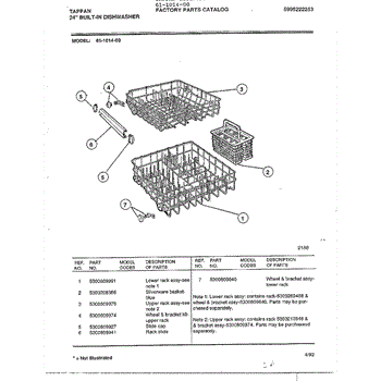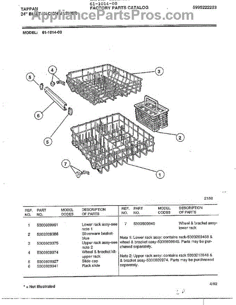 Parts for Frigidaire 61-1014-00: Tappan 24" Built-In Dishwasher Parts