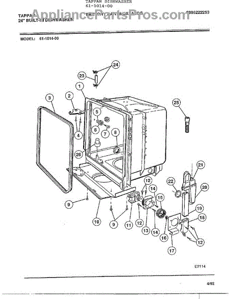 Parts for Frigidaire 61-1014-00: Tappan 24" Built-In Dishwasher Page 4 Parts