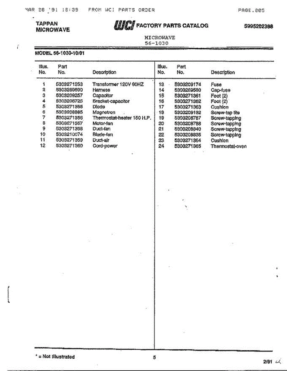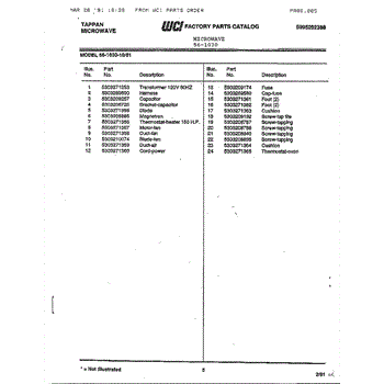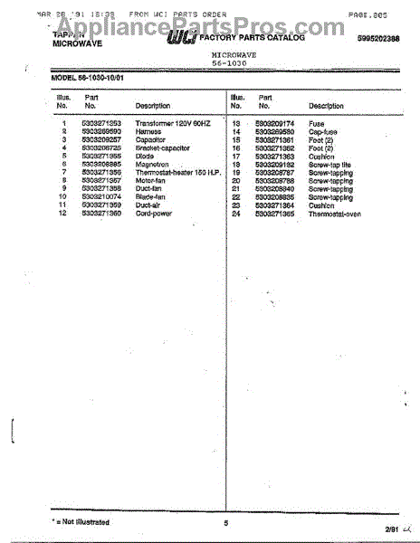 Parts for Frigidaire 56-1030: Tappan Microwave Parts