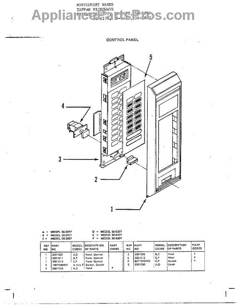 Parts for Frigidaire 56-6897: Tappan Microwave / Control Panel Parts