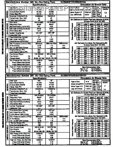 Parts for Icp NUG9125FKB1: Tech Data Parts