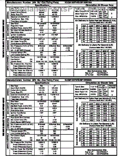Parts for Icp NUG9125FKB1: Tech Data Parts