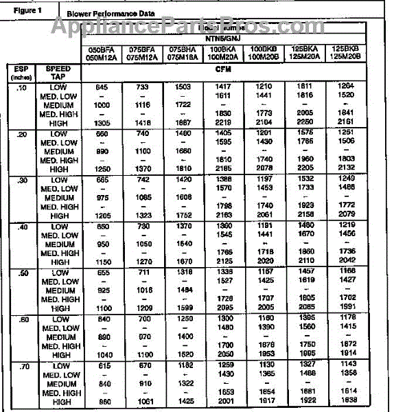 Parts for Icp NTN5100BHA1: Technical-Blower Performance Data Parts