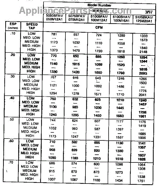 Parts for Icp NDN5075BFA1: Technical Data Parts
