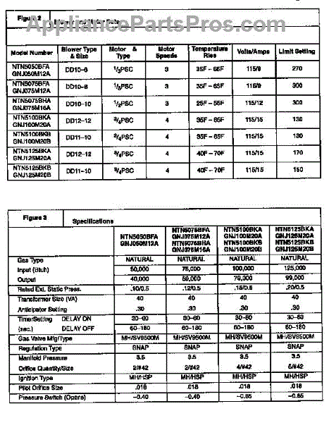 Parts for Icp GNJ050M12A1: Technical Service Data Parts