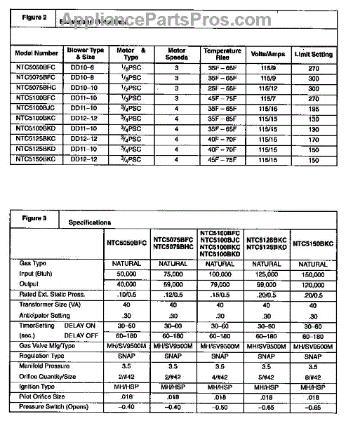 Parts for Icp NTC5125BKC1: Technical Service Data Parts