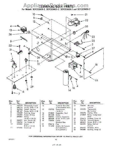 Parts for Whirlpool 3CFCS3AE92: 10 - Terminal Box Parts