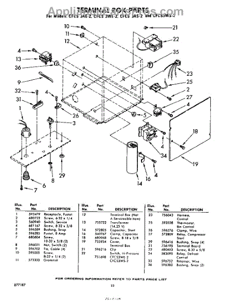 Parts for Whirlpool CFCS3AE2: 10 - Terminal Box Parts
