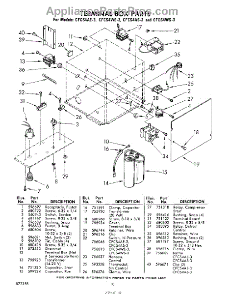 Parts for Whirlpool CFCS4WE3: 10 - Terminal Box Parts
