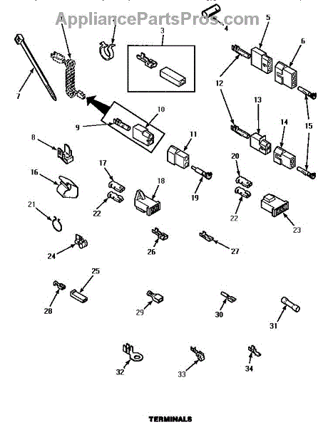 Parts for Amana LE4907L/P1163713WL: Terminals (Le4807l / P1163706wl) (Le4807w / P1163705ww) (Le4907l / P1163713wl) (Le4907w / P1163712ww) (Le9107w / P1163701ww) (Le9207w / P1163710ww) Parts