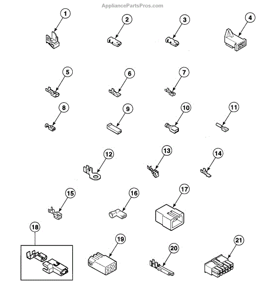 This 1/4" female spade terminal provides a secure electrical connection for appliance wiring, restoring reliable contact between wires and male tabs. It's a simple replacement for worn, loose, or corroded quick-disconnect fittings. What it does: