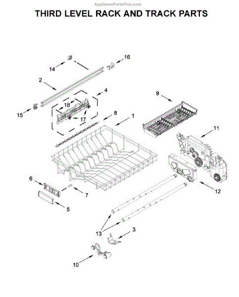 Parts for Kitchenaid KDFM404KBS0: Third Level Rack And Track Parts