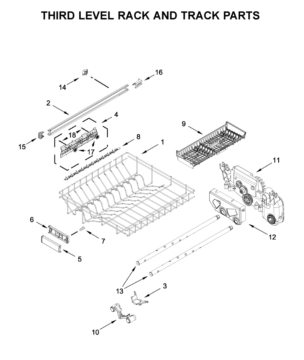 Parts for Kitchenaid KDPM604KBS0: Third Level Rack And Track Parts