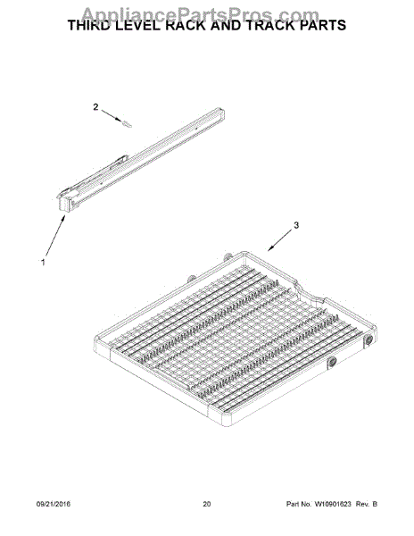 Parts for Kitchenaid KDTE254EWH2: 11 - Third Level Rack And Track Parts