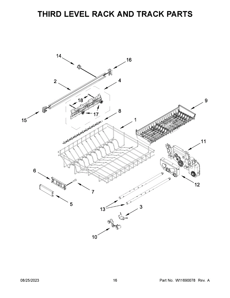 Parts for Kitchenaid KDTM405PPS0: Third Level Rack And Track Parts